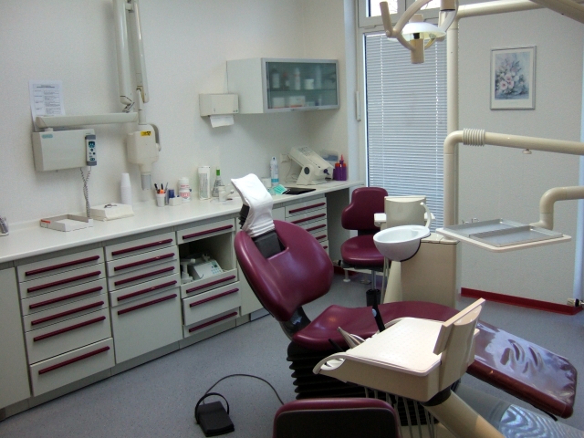 Das ist unser Hauptbehandlungszimmer. Ausgestattet mit moderner Apparatur, hier finden die meisten Behandlungen statt. Röntgenbilder können wir bequem machen, ohne dass Sie den Behandlungsstuhl verlassen müssen.